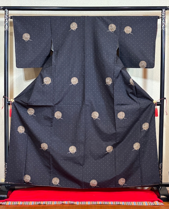 きもの蔵 ◆ 刺子ふくろう 紬袷きもの[未着用]