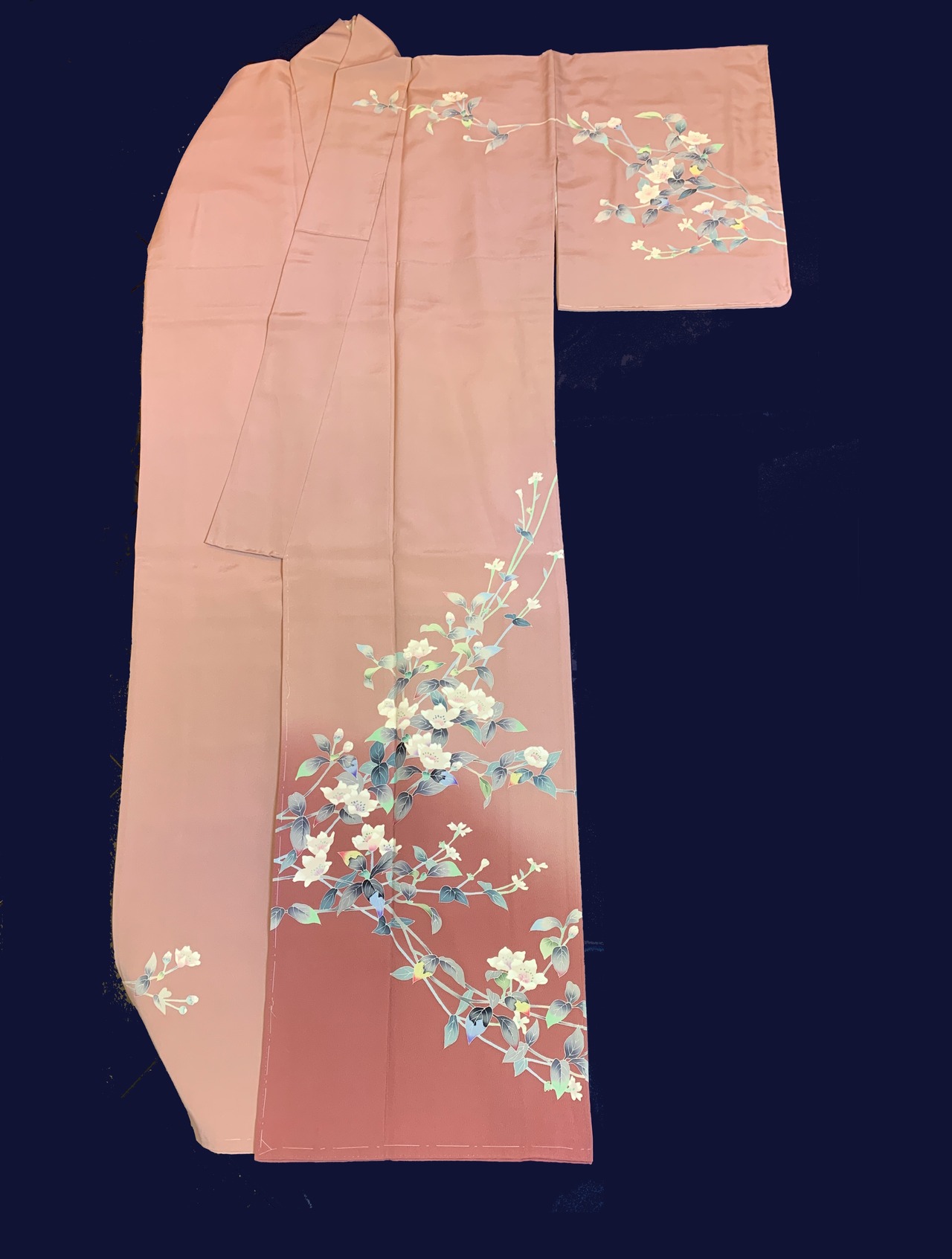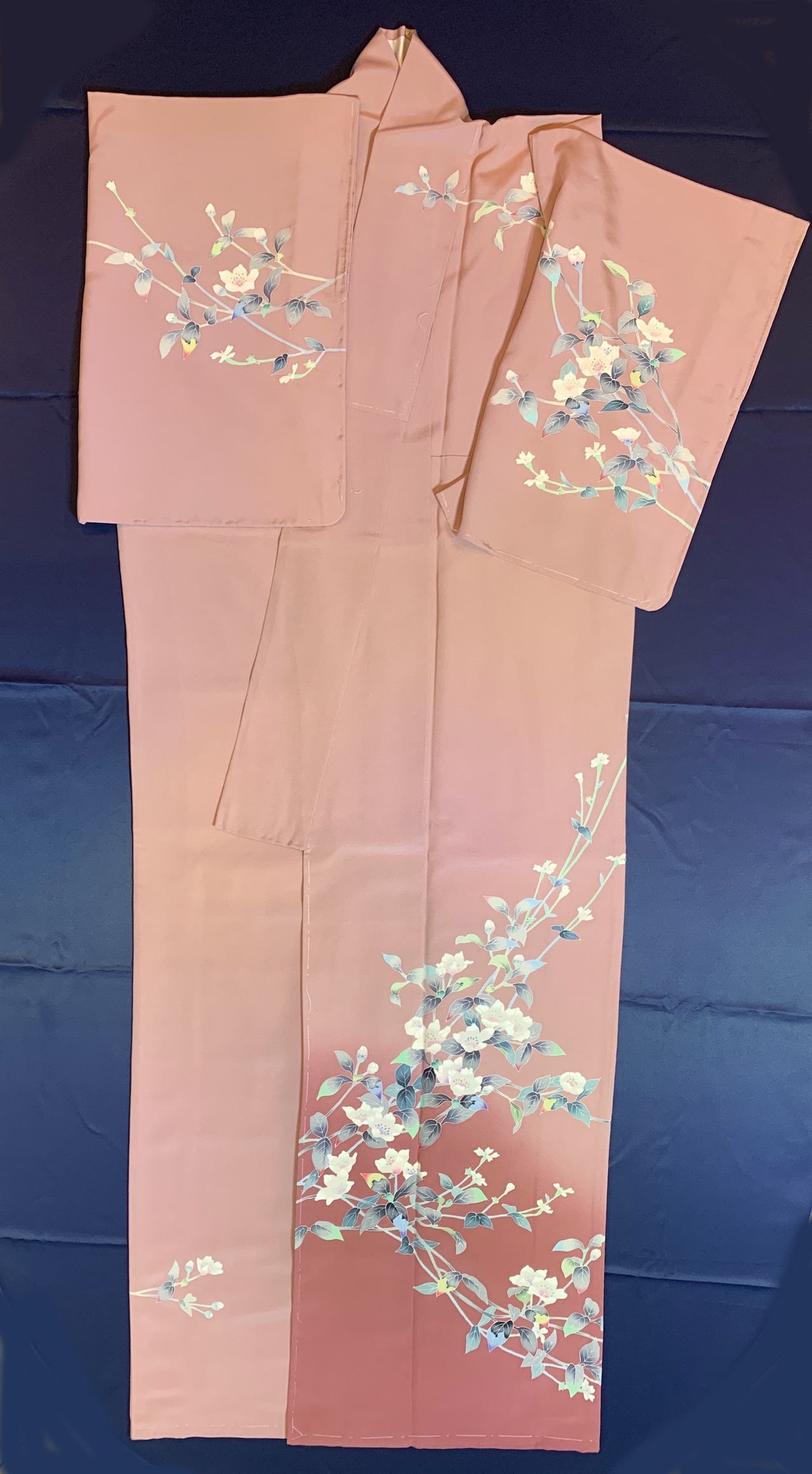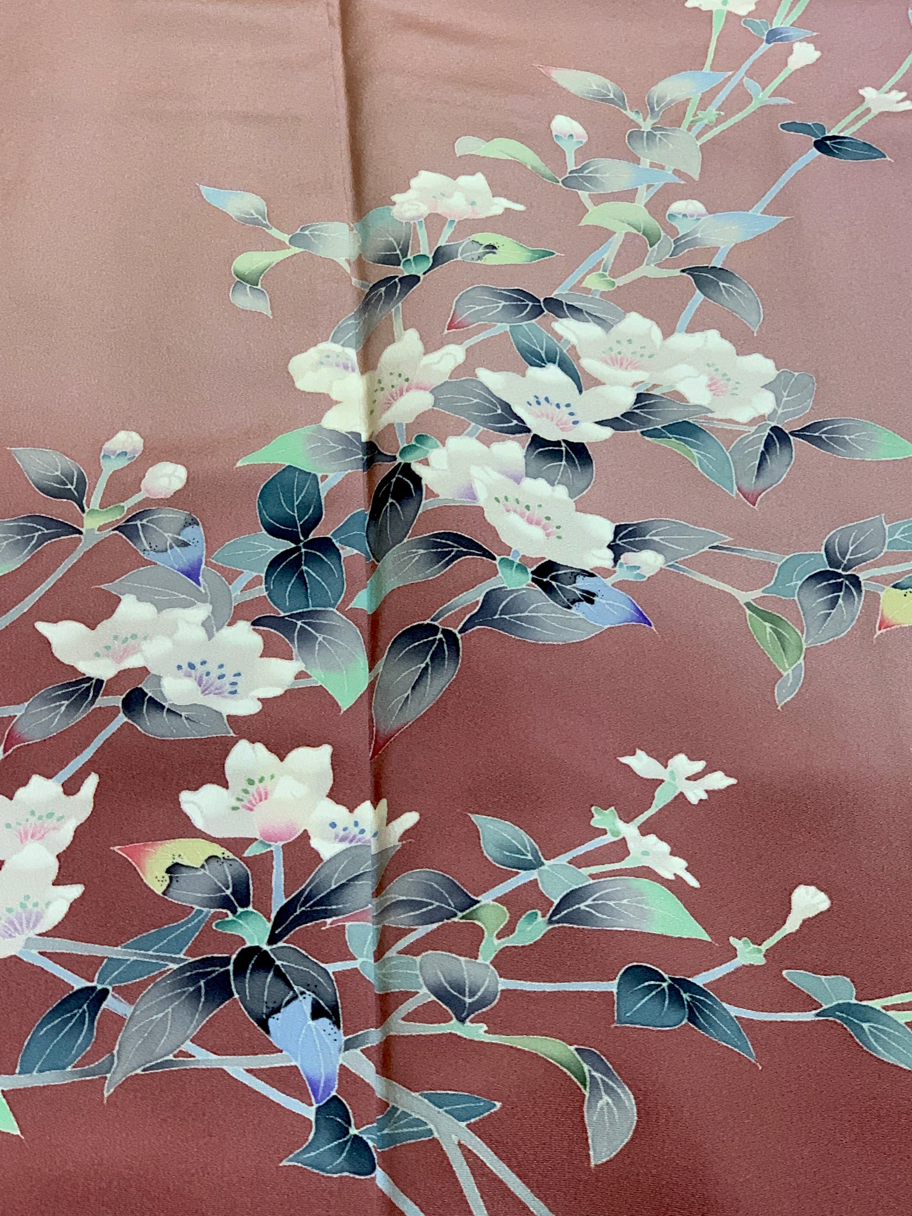 お仕立て寸法も十分ありますので、お背が高い人に装っていただけたら、描かれた枝花が映えることでしょう。
