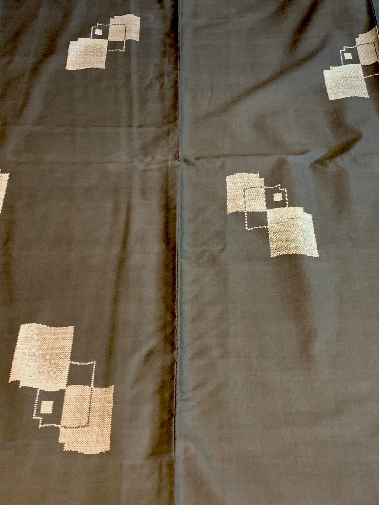 本場大島紬として極上品のものなのですが、展示会などでのディスプレイ品としてボディーなどに着せていた為、若干ボディーの腰の部分(黒地)に擦れたような箇所を見つけています。