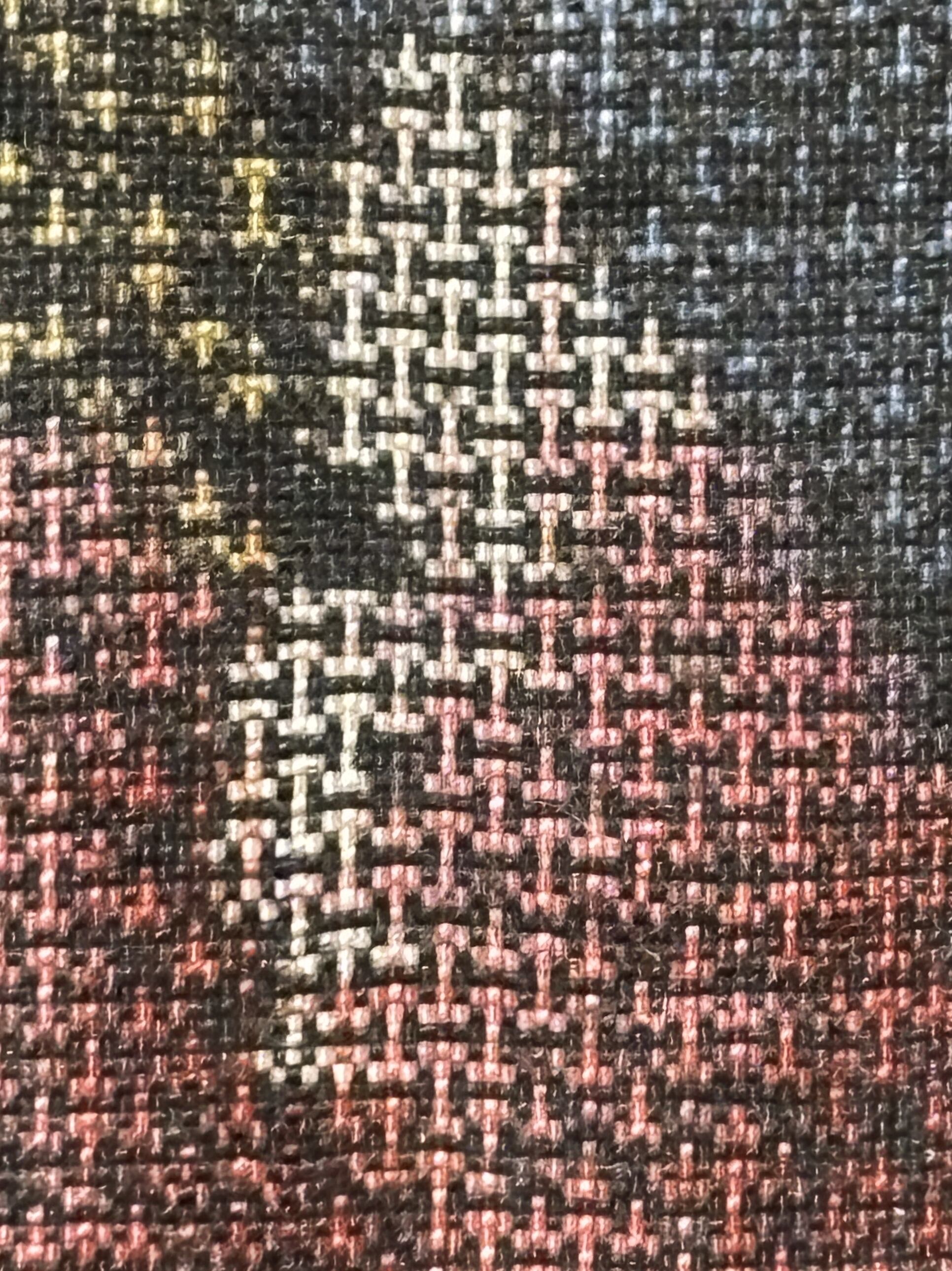 糸・染め具合と絣を確認し、絣糸1・地糸2・経糸総本数、経絣糸本数から9マルキカタスの本場泥大島紬です。