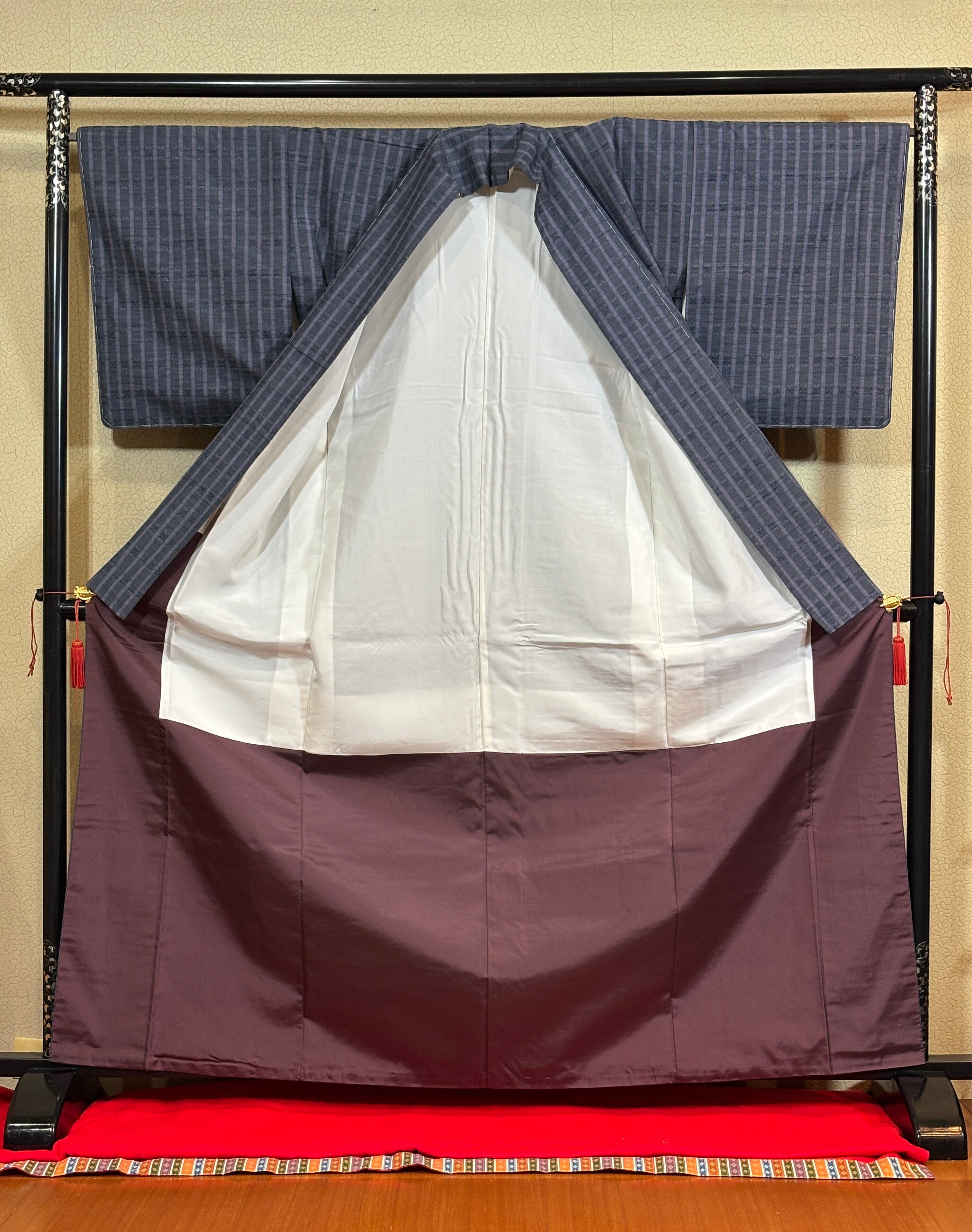 地色は桔梗色系の色合いで、縦筋に入った青紫の色合いも素敵です。