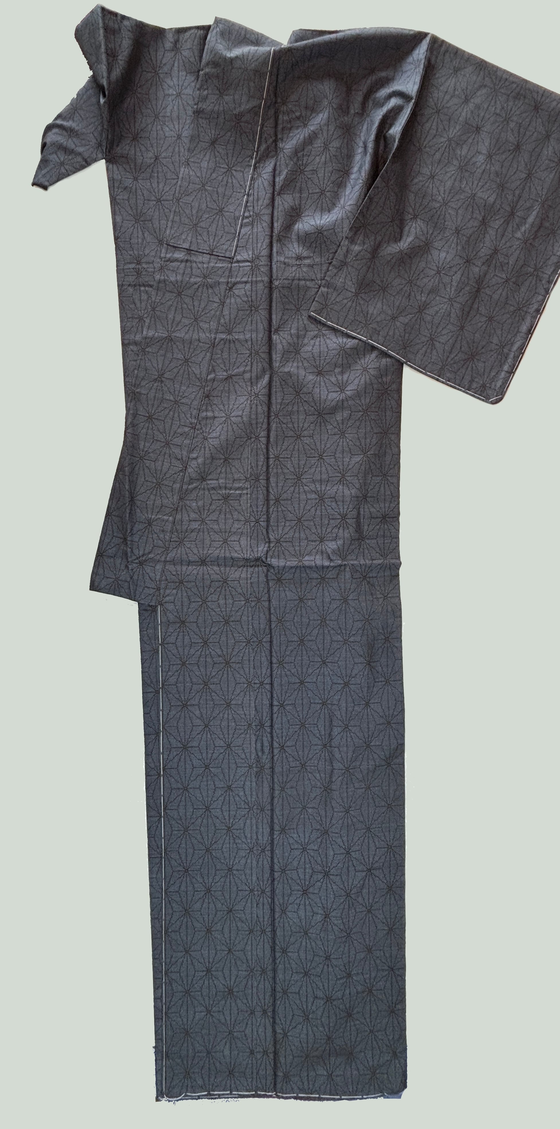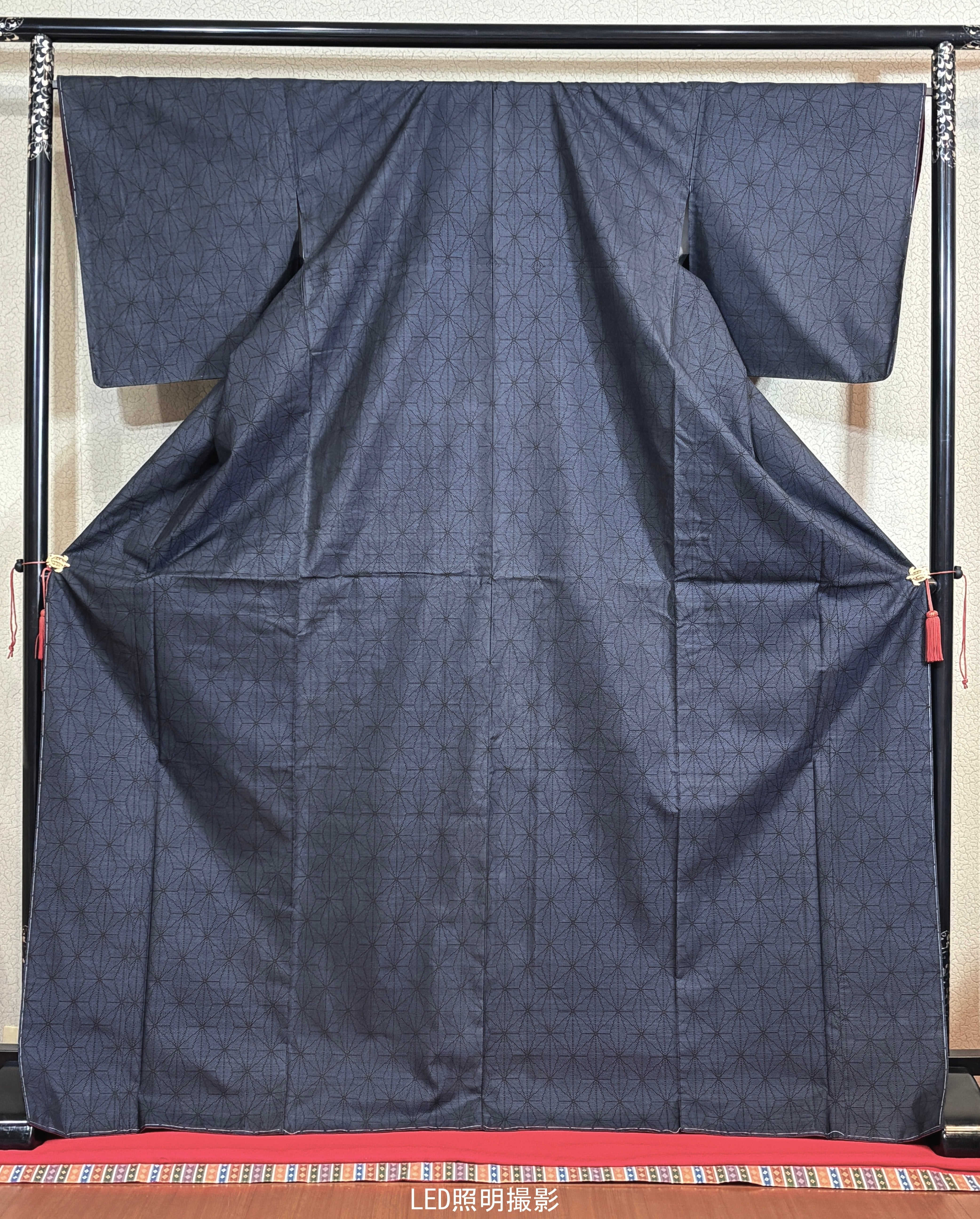 絣は麻の葉文様を基調とした幾何柄で、細かな絣によって全体に均整の取れた表情を見せています。