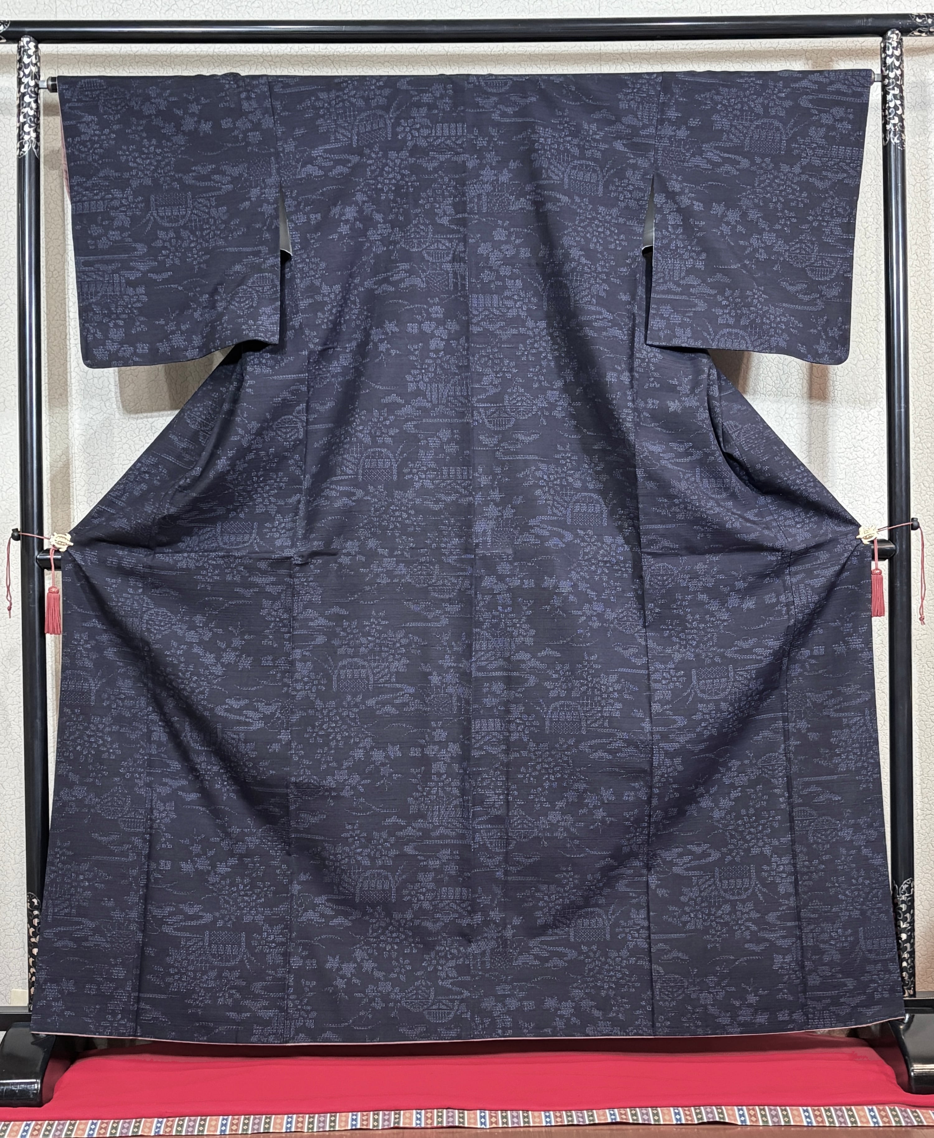 亀甲の細やかさと織り締まりの良さは、量産的な紬とは明らかに一線を画すものです。