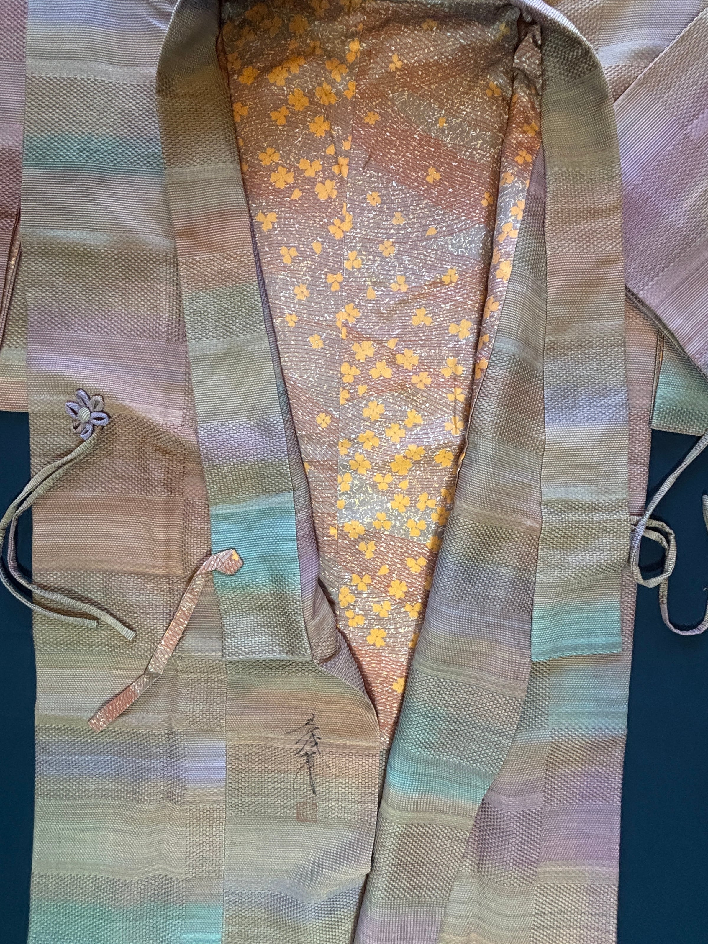 裏地には大胆な桜流水文様を合わせ、着脱の所作にも華やぎを添えています。