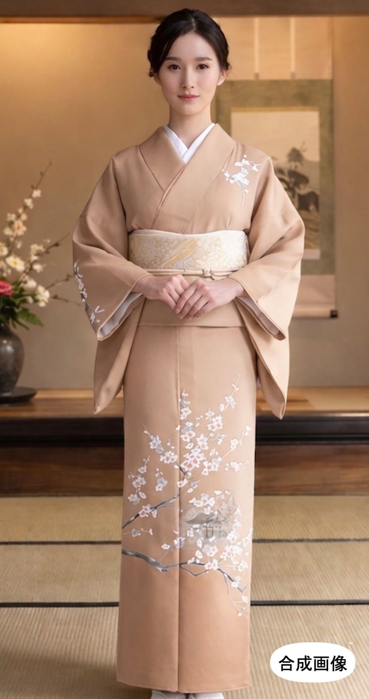 落ち着いた色調の中に、枝桜の意匠がやさしく映える上品な附下訪問着です。