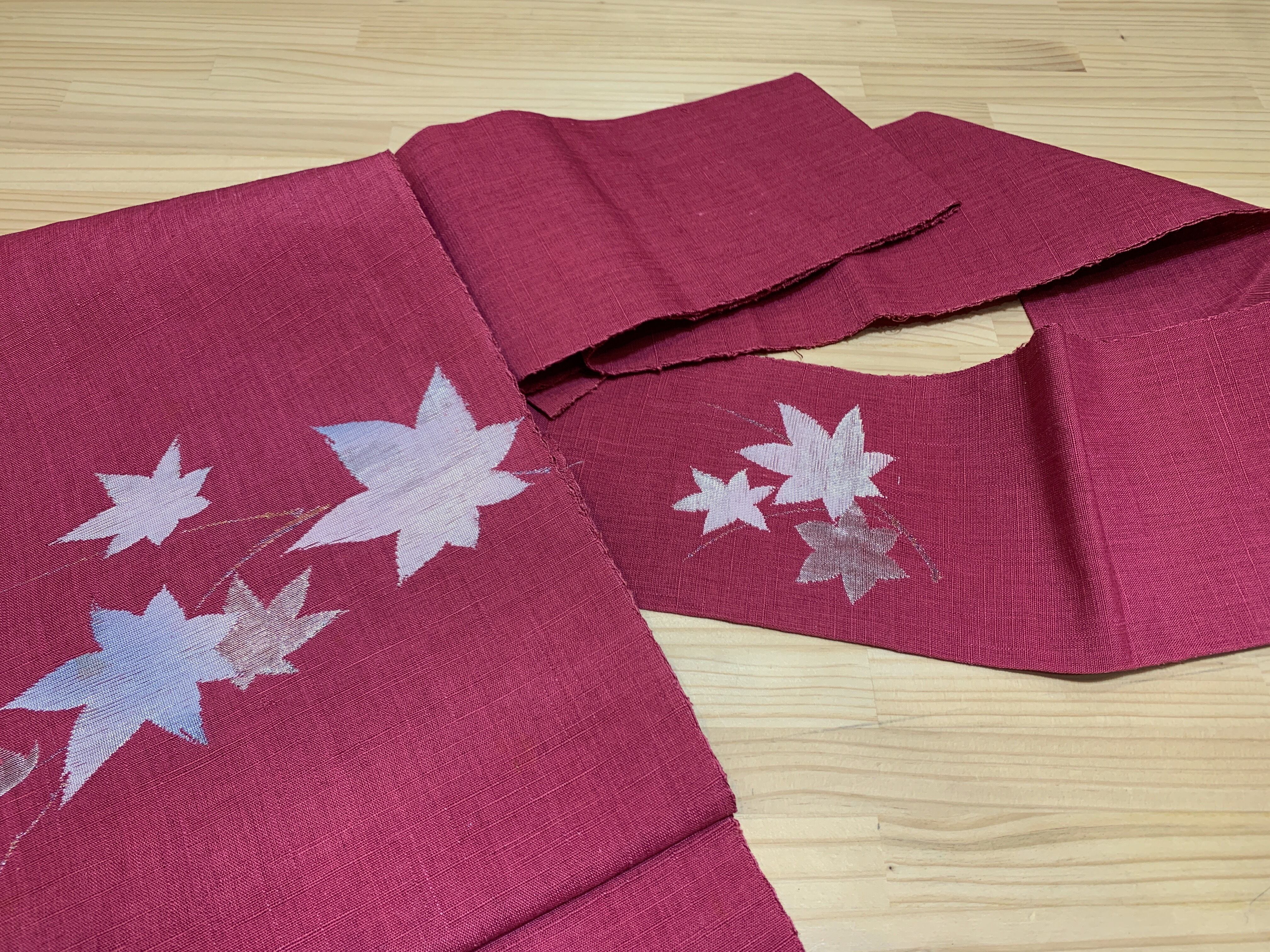 落ち着いたローズの色地に銀の楓がどこか涼しげです。
