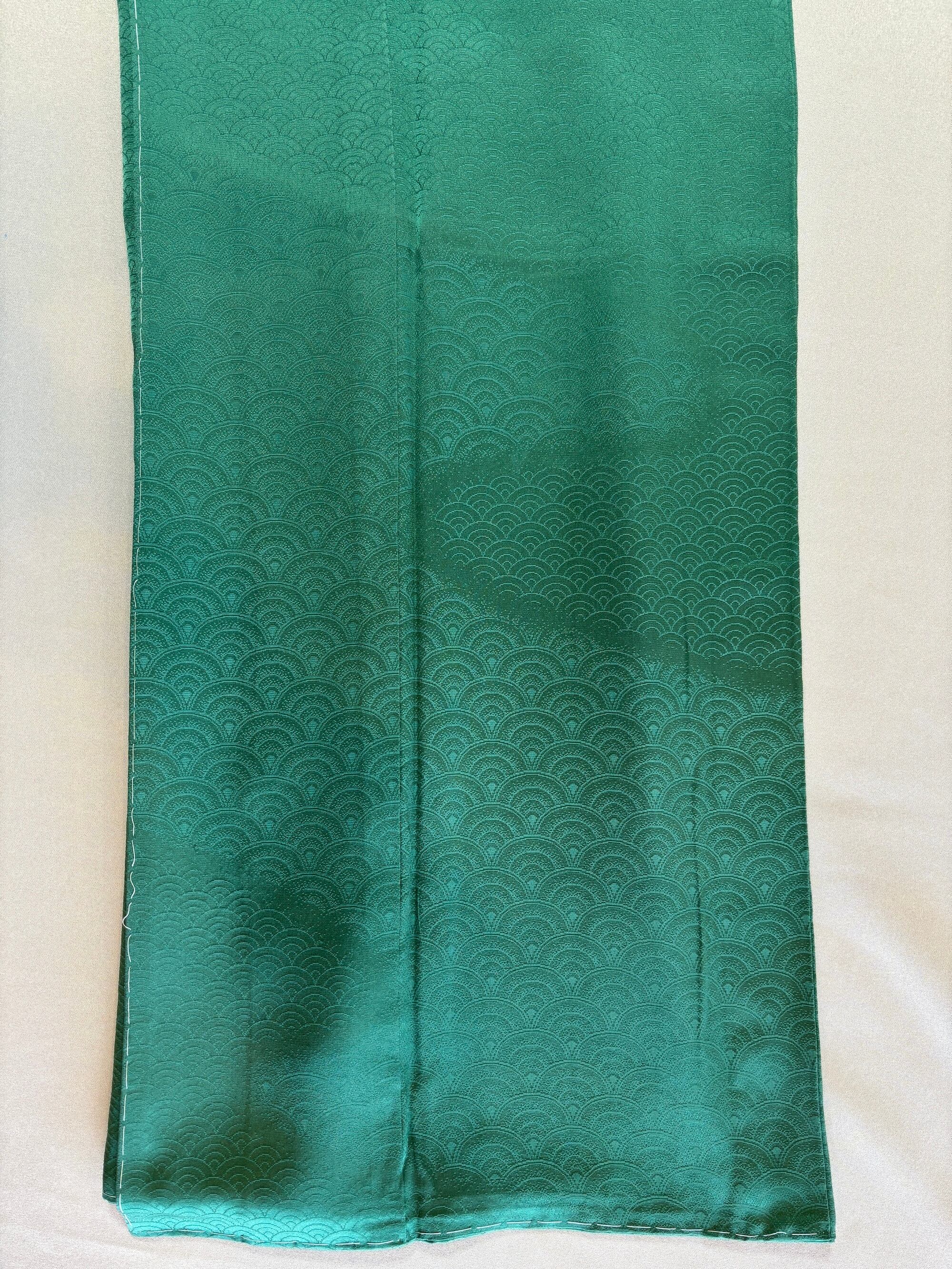 綸子地のため、自然光や照明の違いにより、青みが強く見えたり、やや緑みを帯びて見えたりと印象が変わるお品です。