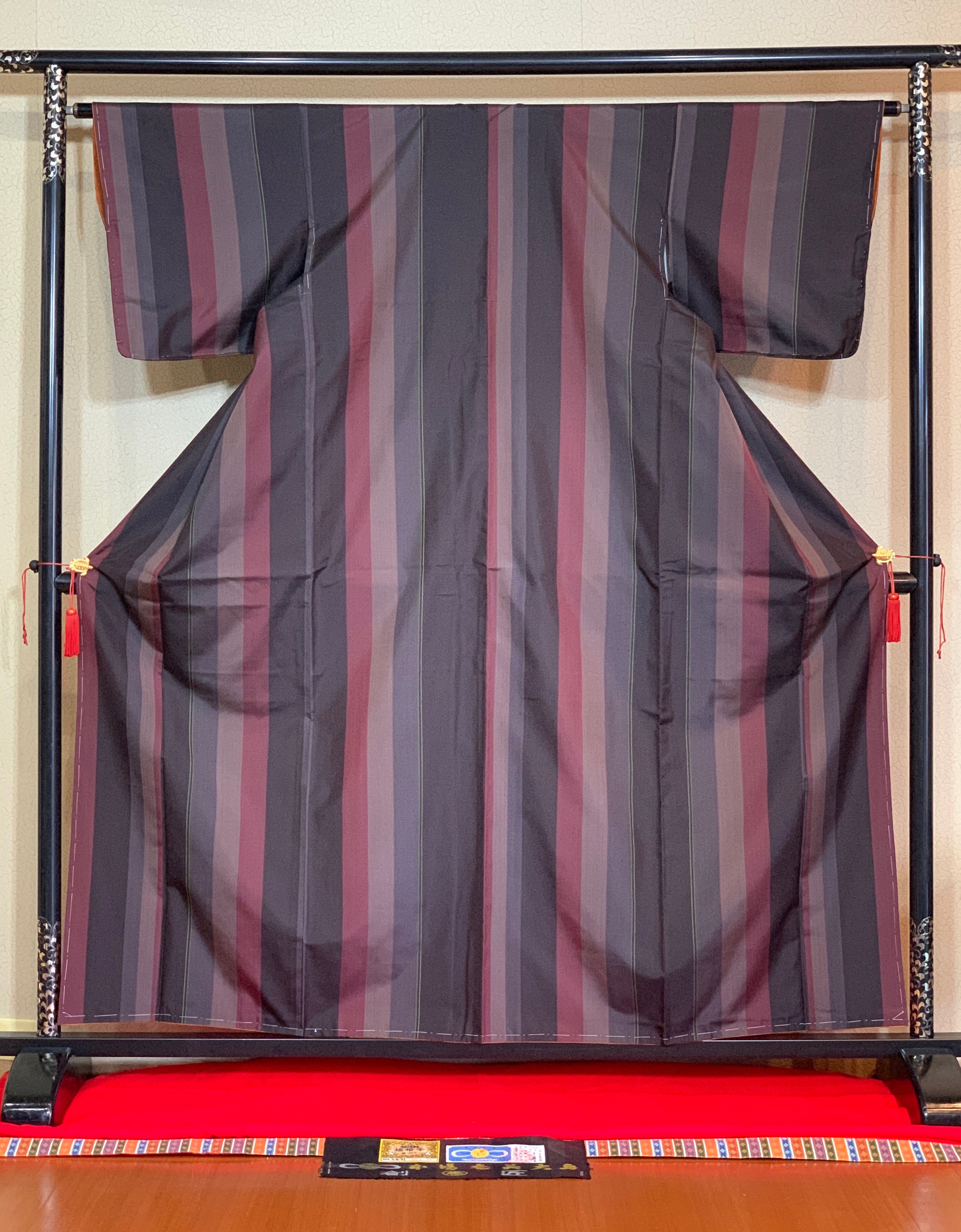 本場大島紬の縞格子です。