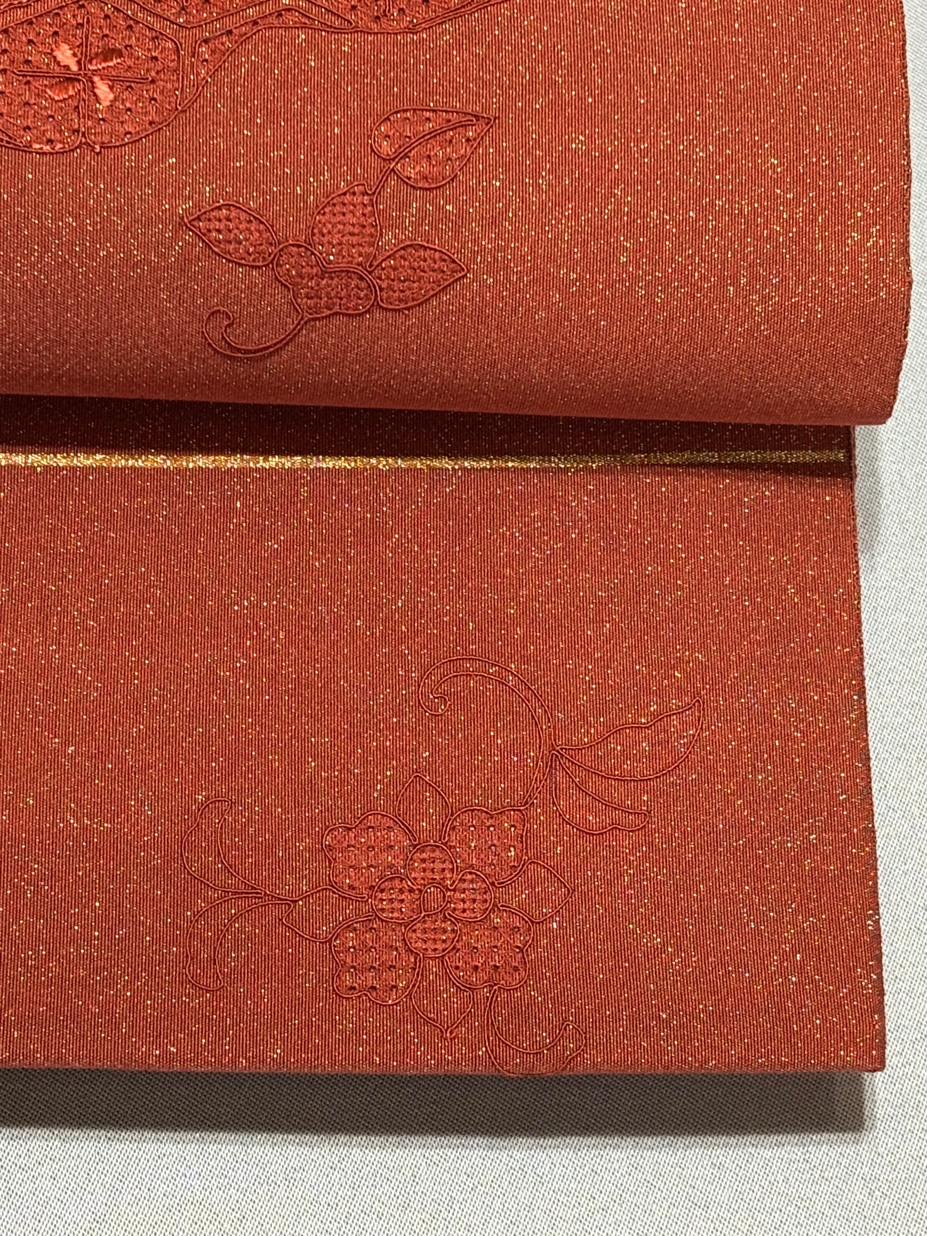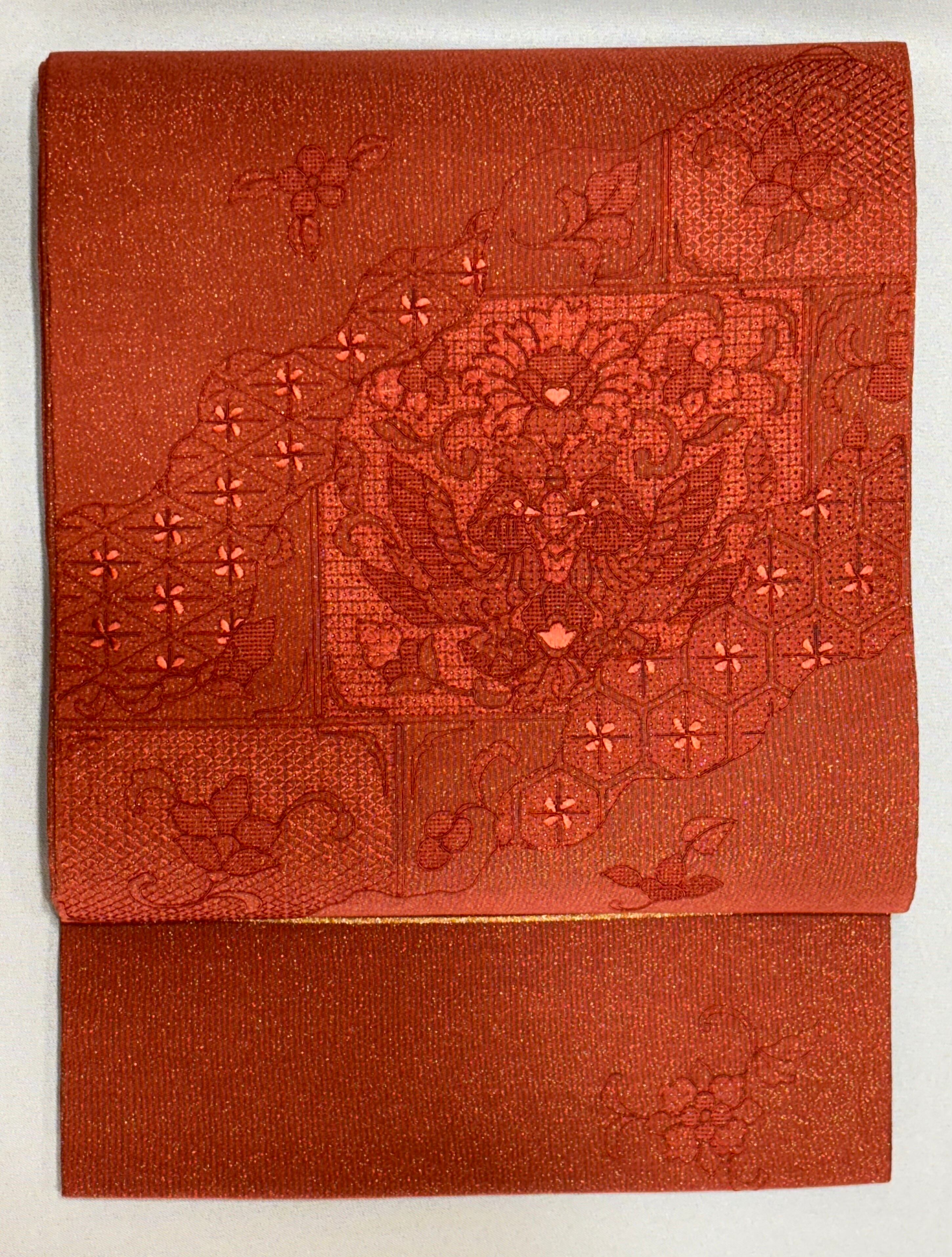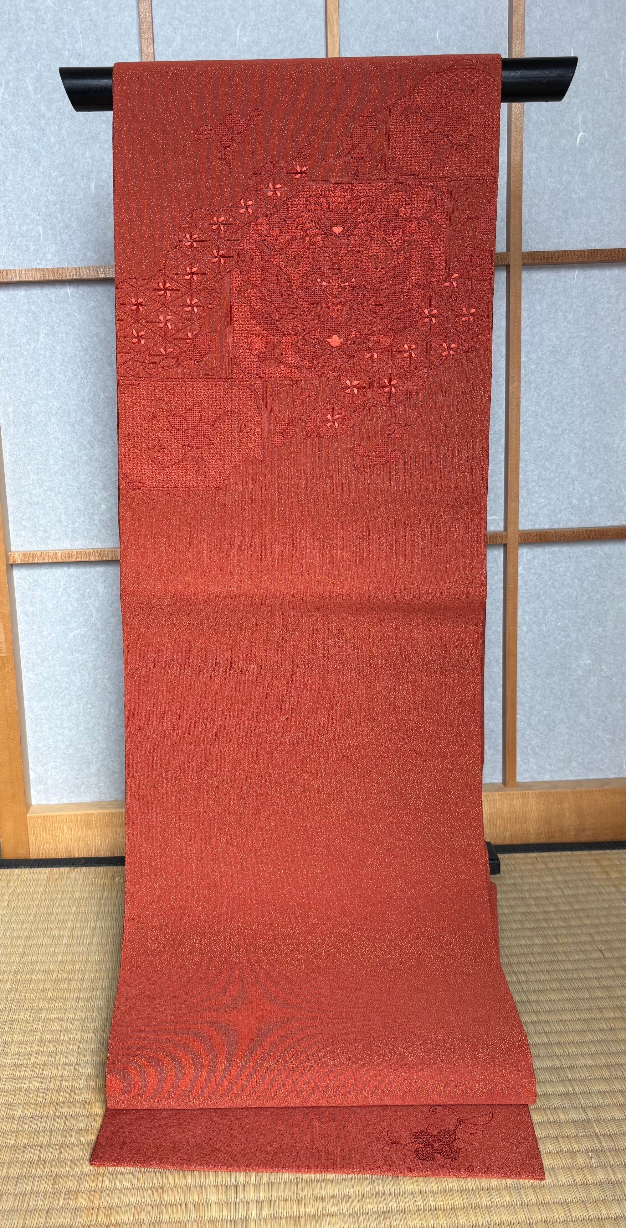 きもの蔵 ◆ 紅花染 金箔糸織り込み袋帯[未着用]