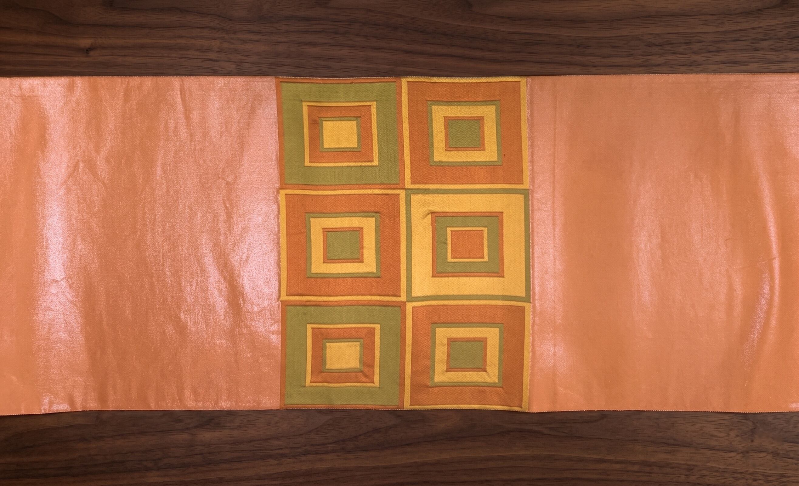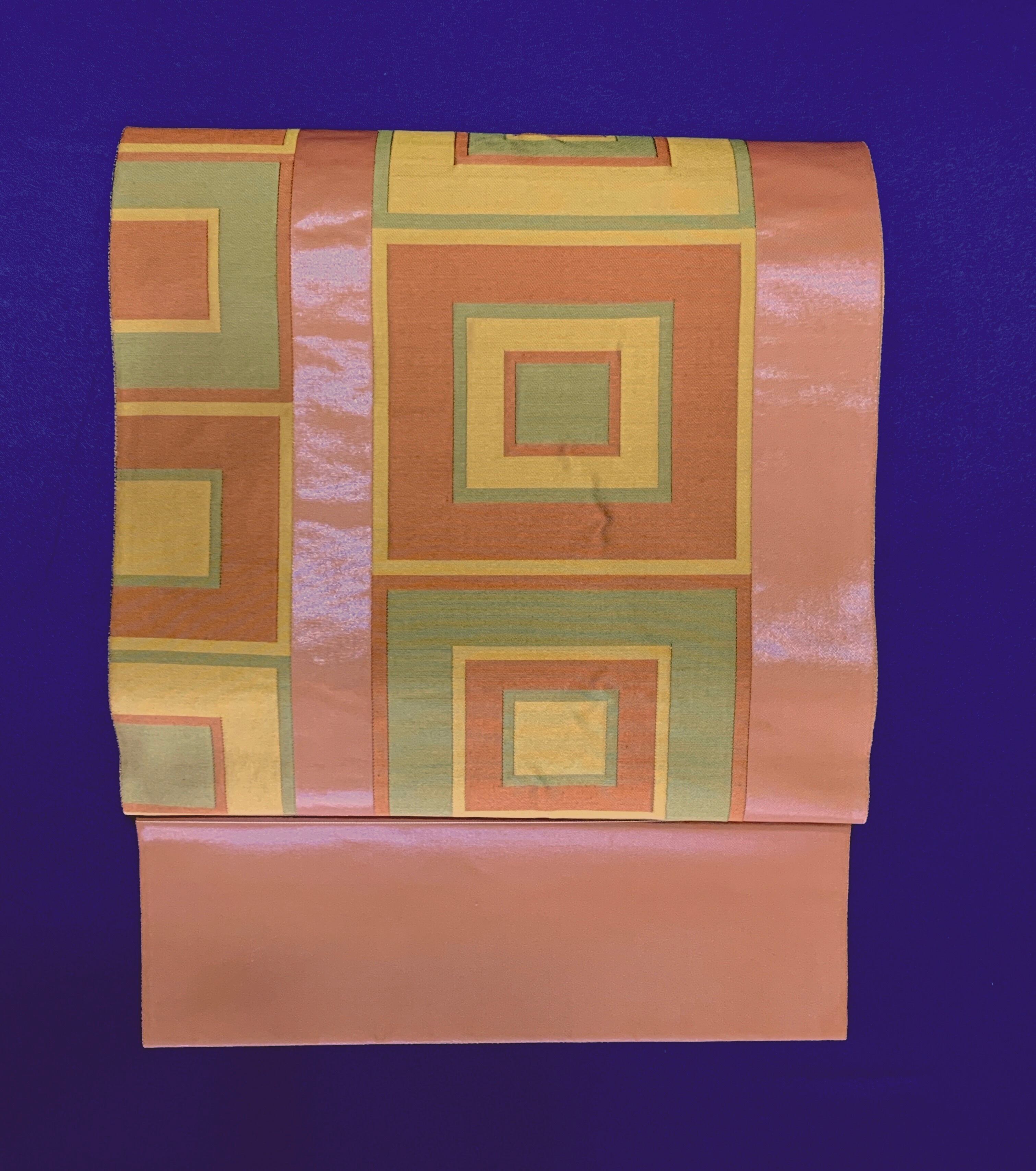 焼き箔を贅沢に織り込み、回廊繋ぎの意匠を端正な幾何文様として構成した袋帯です。