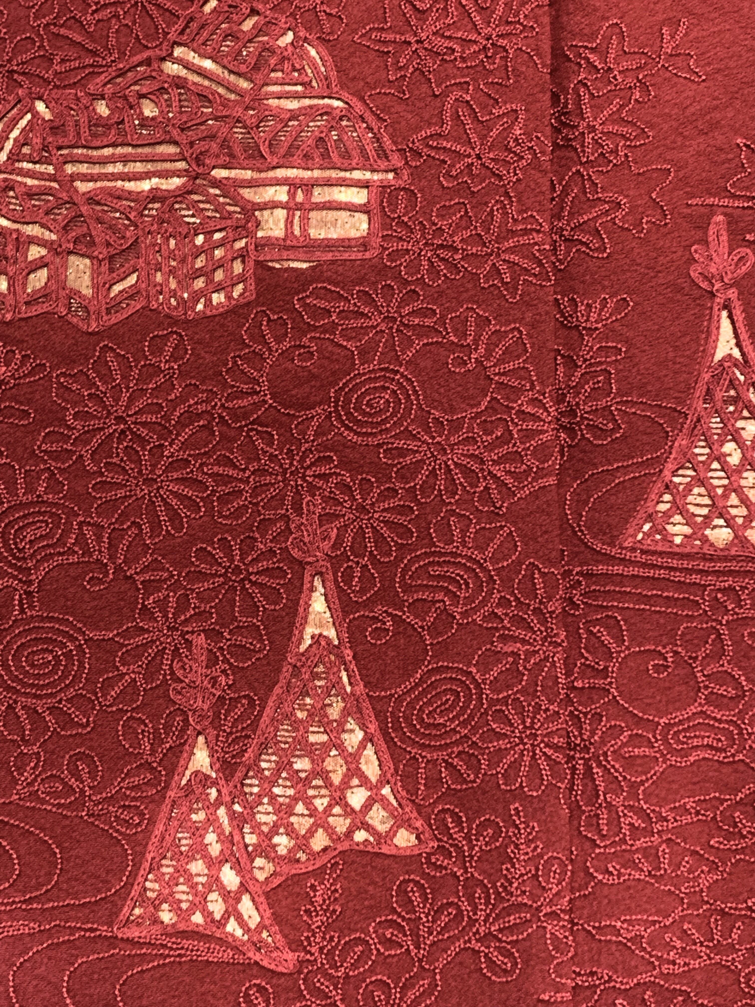 相良刺繍特有の粒立ちが、同色の中にさりげなく浮かび上がり、控えめながらも奥行きのある表情を見せてくれます。