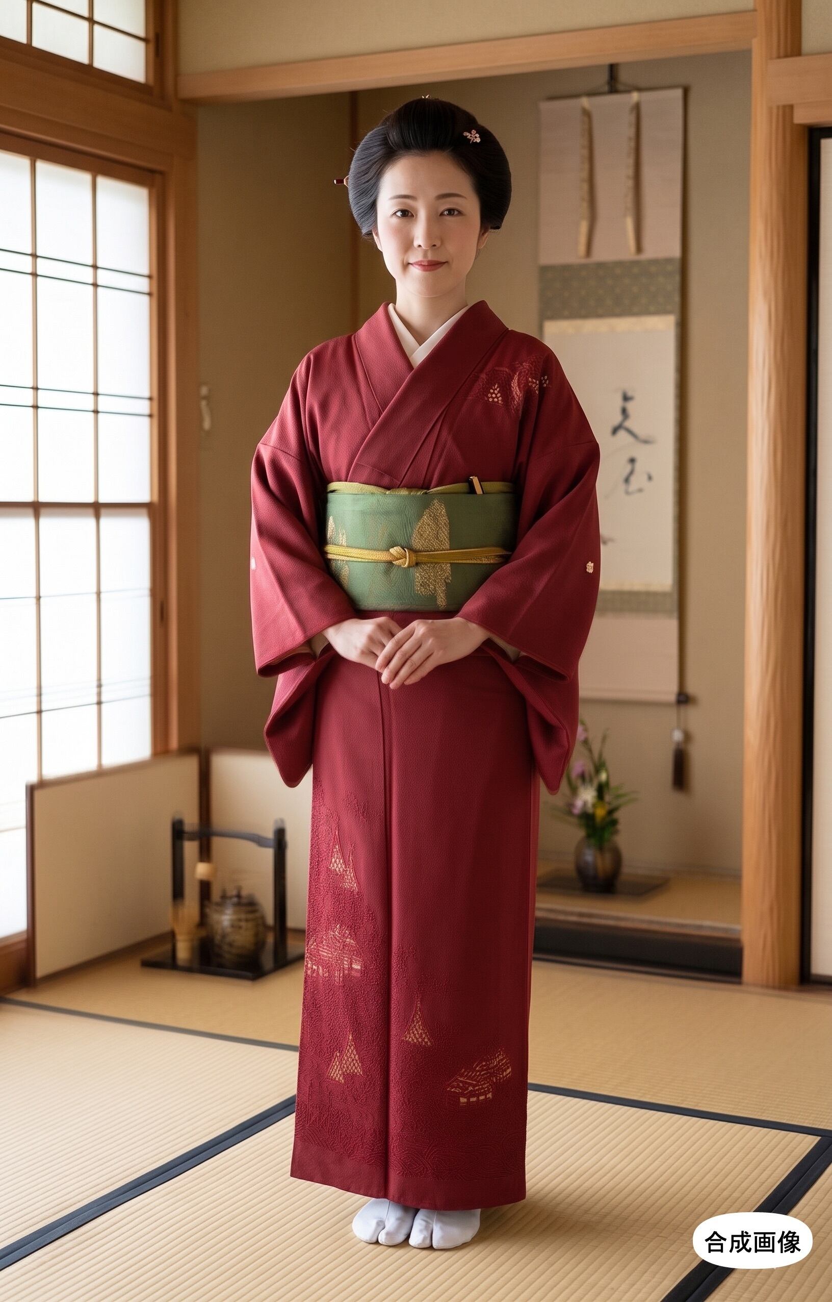 帯合わせによって、茶席や改まった席にもふさわしい品のある着姿をお楽しみいただけます。