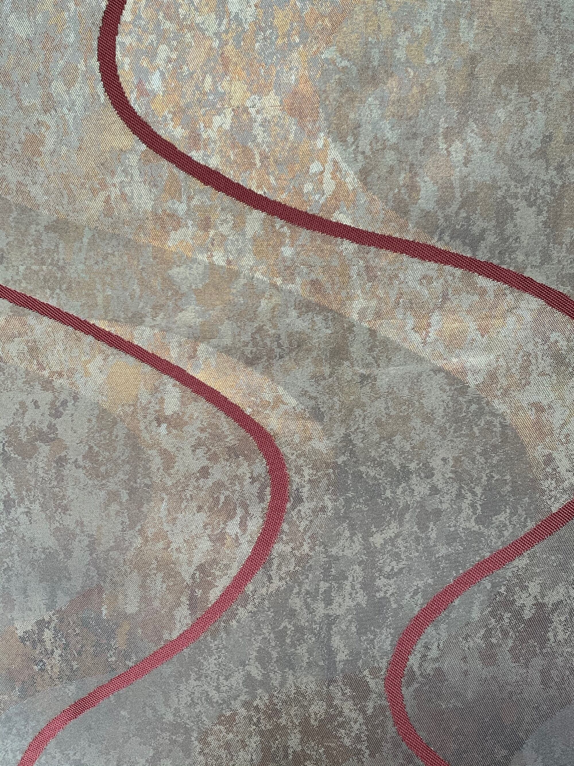 焼箔による金銀箔をぼかしのように織り込み、ゆるやかな流水文様を表現した一品。