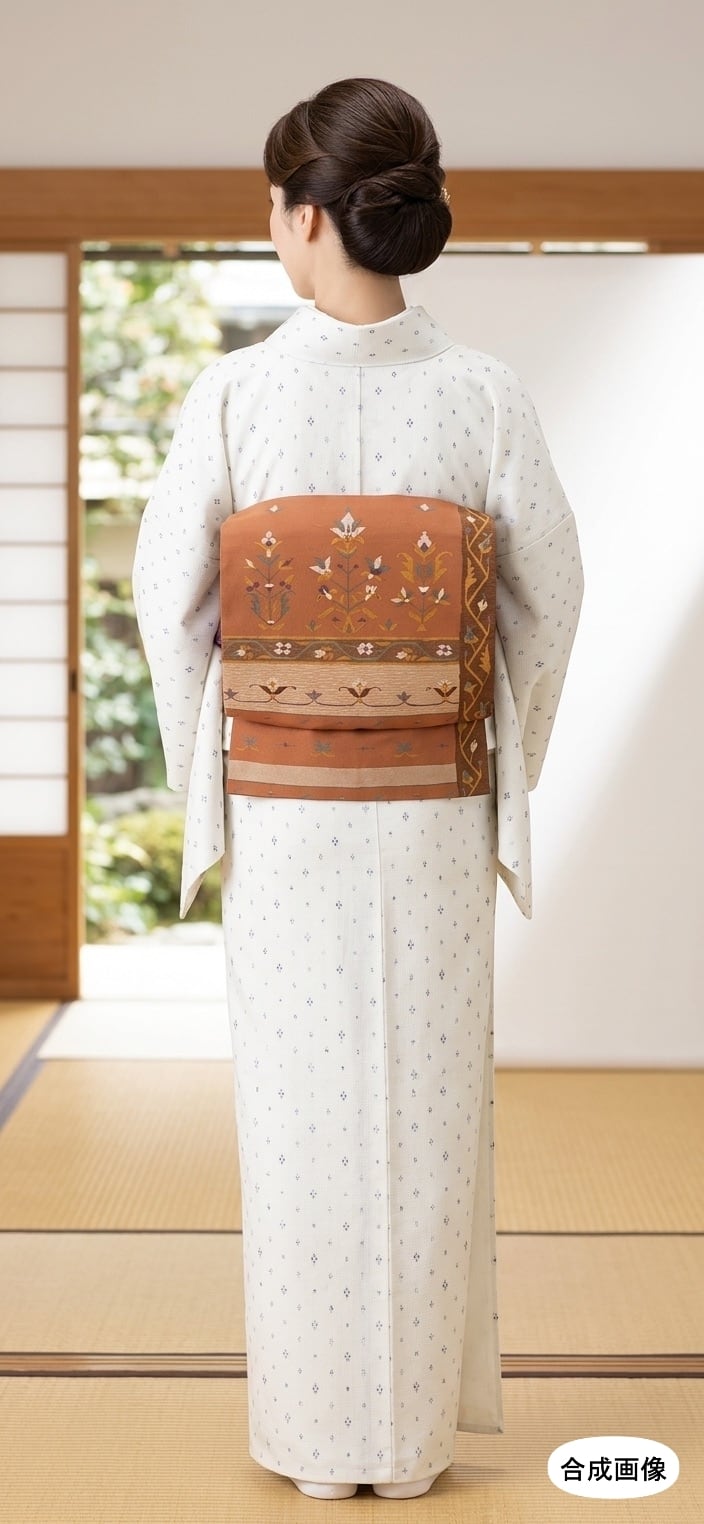 また、色無地やシンプルな附下に合わせても帯の表情が活き、着姿に奥行きを生みます。