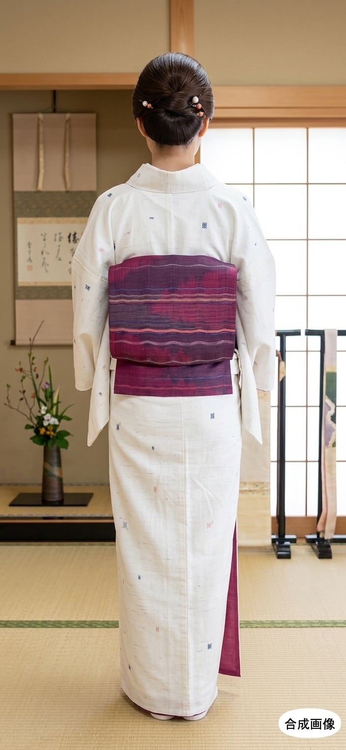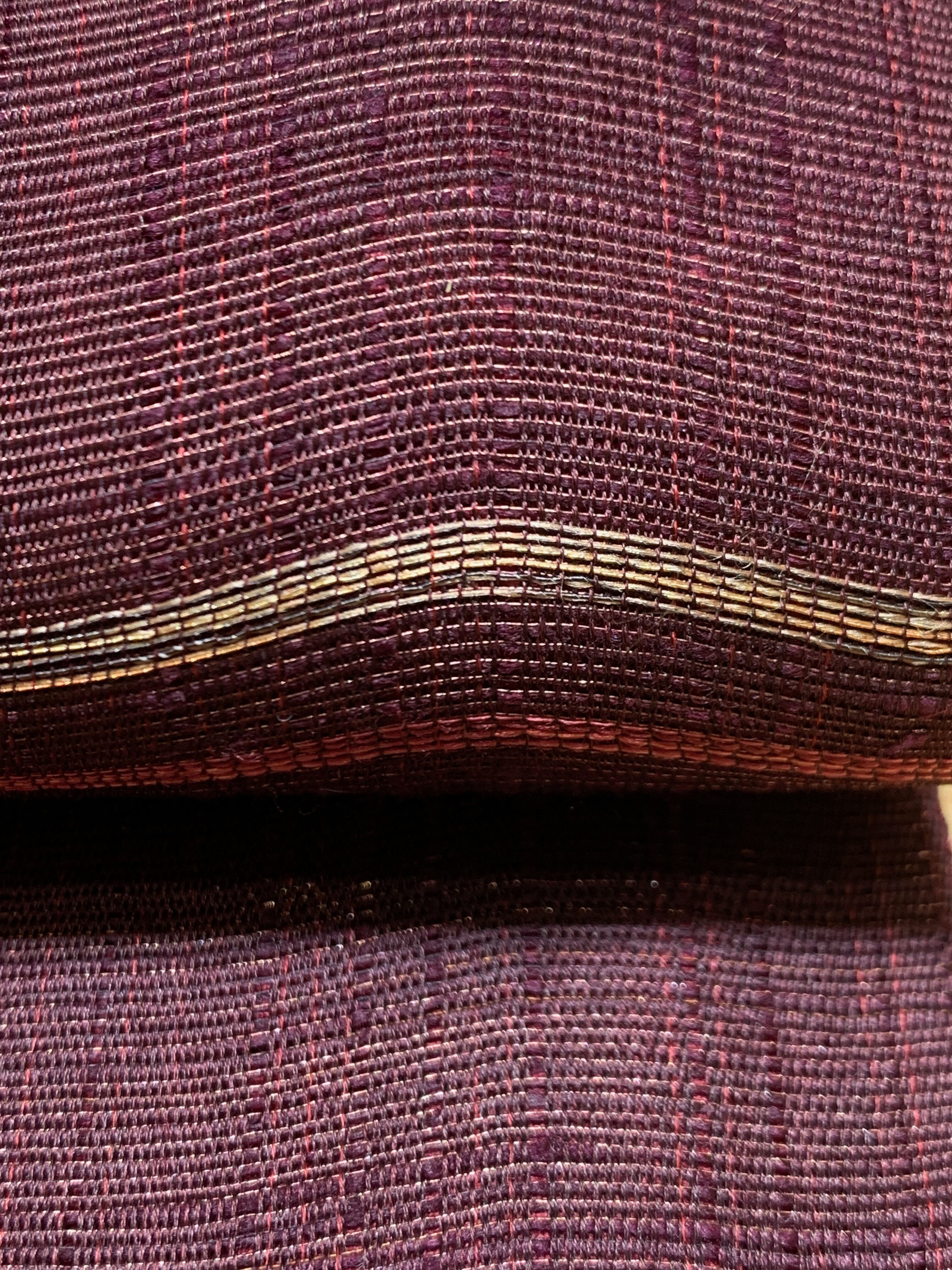 紬地風にツルッとしたコーティングを感じる帯地です。