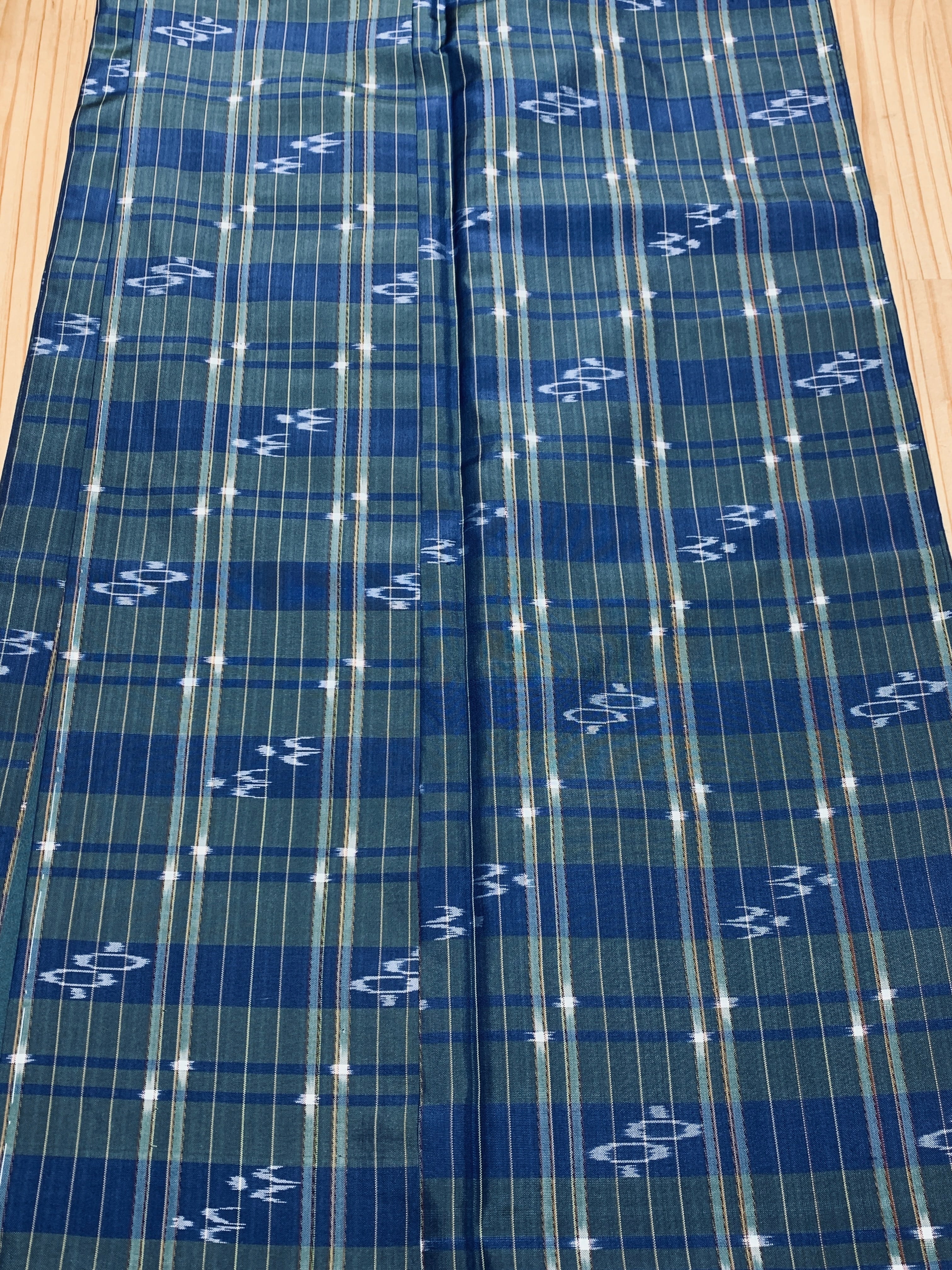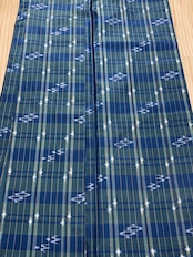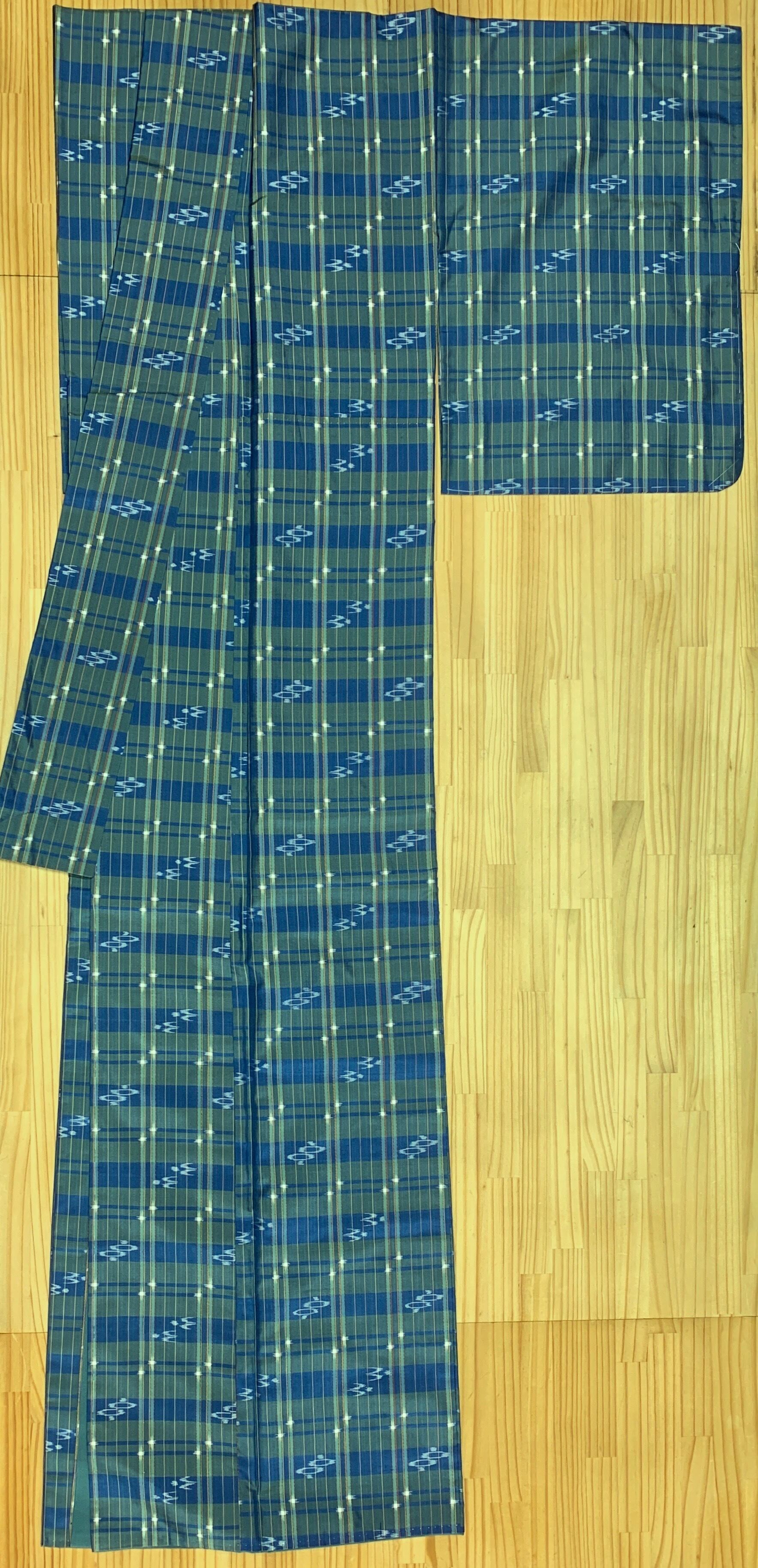 薄藍と薄緑が織り成す色合いは琉球の趣を楽しみつつ、本土の袷時期にもお洒落な紬として装える着物です。